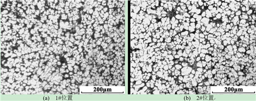 Figure 5 is the microstructure and picture of the semi-solid die casting part of the router cover. It can be seen that most of the primary α-Al phases in the structure at all positions are nearly spherical, with fine grains and uniform distribution, obvious semi-solid structure. The thermal conductivity of the router cover die casting reached 165.3 W•m/K after aging heat treatment at a temperature of 200ºC for 4 hours. The rheological die casting experiment obtained a wireless router cover die casting with clear outlines, smooth surfaces, high dimensional accuracy, and no defects, as shown in Figure 5d. Through the X-ray transmission flaw detection of the router cover die casting part, the results show that there are no obvious defects such as shrinkage porosity, shrinkage cavity, gas holes and oxidation inclusion in the die casting part, as shown in Figure 6.